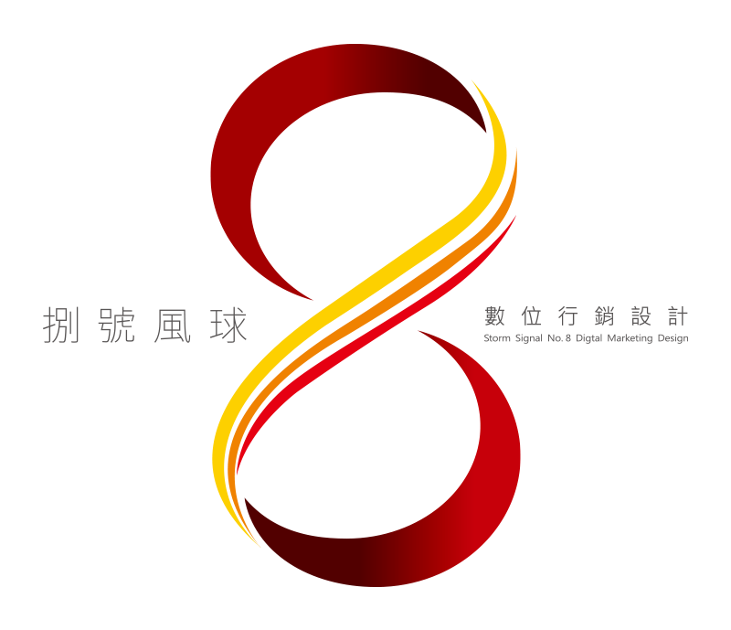 LOGO以阿拉伯數字「8」作為核心視覺主體,象徵品牌名稱「8號風球」,同時代表無限 (∞) 的創意循環與能量流動。此設計傳達出公司在數位行銷與設計領域中,不斷創新、靈活應變、永續發展的品牌精神。